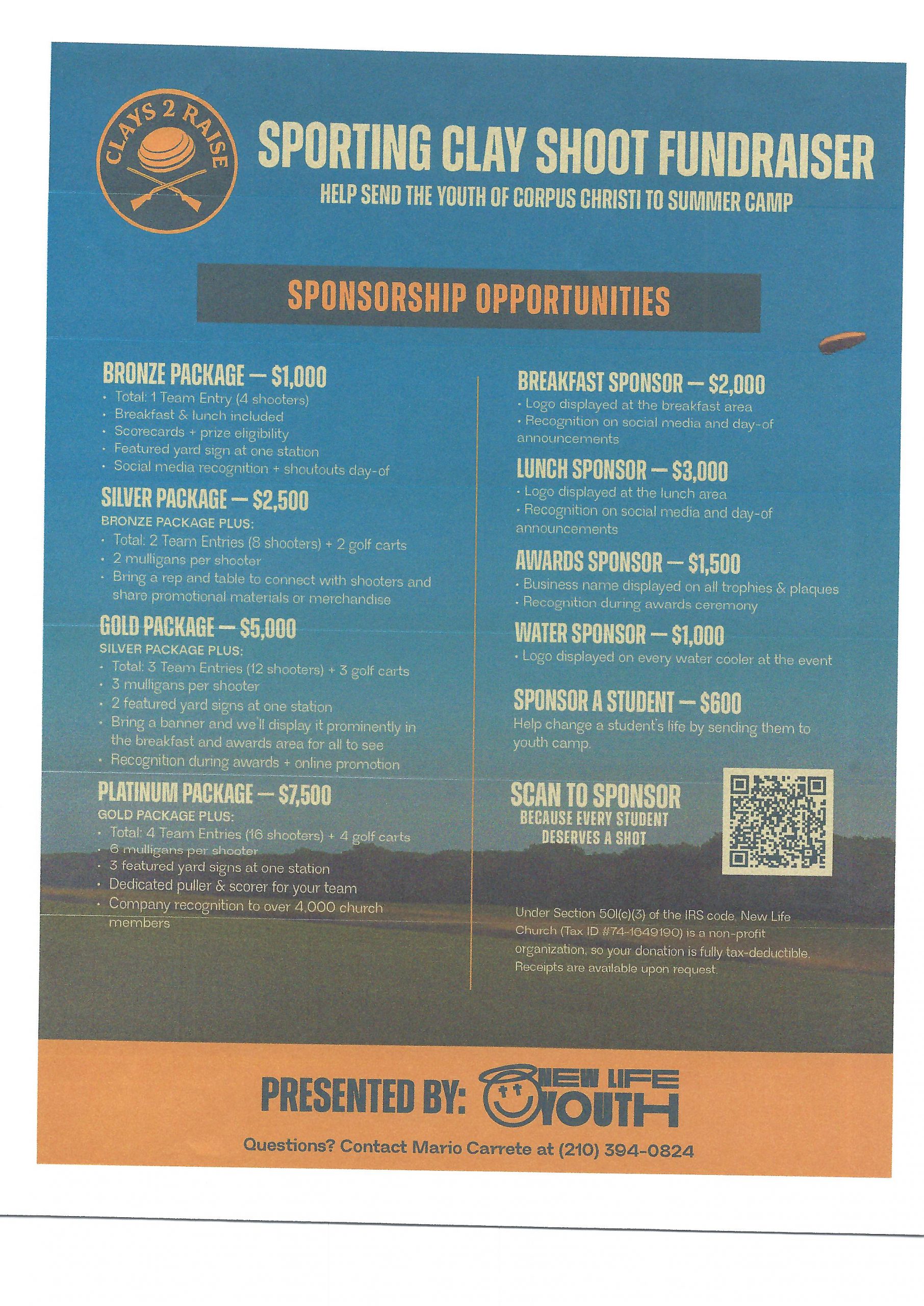 New Life Church Corpus Christi, sporting clay fundraiser for youth summer camp.